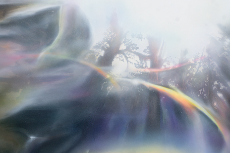 The “light” forms created in the paintings are not solely derived from visual experience but also orig- inate from programmatically generated digital light in the virtual world. These “lights” are clearly non-existent in the real world, mere simulations of light, yet they are recognizable by both humans and machine algorithms, achieving a balance I strive for.